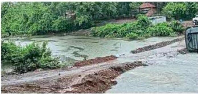 पुलाच्या बाजूने तयार करण्यात आलेला रस्ता पावसामुळे नदीतील पाणी वाढल्याने वाहून गेल्याने ही परिस्थिती उद्भवली आहे; परंतु आता अडकलेले ग्रामस्थ एकमेकांना हात देऊन सुरक्षितस्थळी जात आहेत.