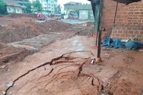 आधीच या ठिकाणी करण्यात आलेल्या खोदाईमुळे मोठ्या प्रमाणात चिखल पसरला असून त्यात जमिनीला भेगा पडून जमीन खचण्याची प्रकार सुरू झाल्याने ठेकेदाराच्या चुकीबाबत येथील छोटे व्यावसायिक आणि नागरिकांतून संताप व्यक्त केला जात आहे.
