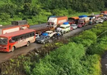 माणगाव आणि इंदापूर शहरात वाहनांच्या रांगाच रांगा लागल्याचे पाहायला मिळत आहे.
