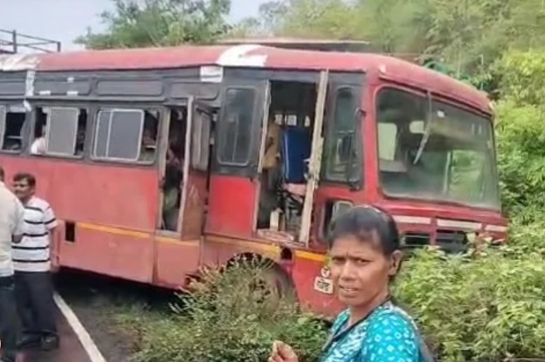 चालक एस. बी. कागदे हे खेड-तुळशी-बोरिवली एसटीमधून २२ प्रवाशांना घेऊन खेड स्थानकातून बोरिवलीकडे जात असताना, निसरड्या झालेल्या रस्त्यावरुन बस अचानक घसरली. चालकाने प्रसंगावधान राखत तातडीने बस थांबवली. अचानक घडलेल्या या प्रकाराने बसमधील प्रवासी भयभीत झाले होते. अपघातानंतर सर्व प्रवाशांना बसमधून खाली उतरवण्यात आले. सुदैवाने कोणतीही जीवितहानी झाली नाही.