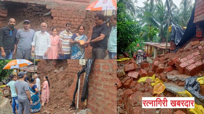 समीक्षा संजय वालम या आपल्या नवीन घराचे बांधकाम करत होत्या आणि त्यासाठी संरक्षक भिंत बांधली होती. मात्र, कालच्या जोरदार पावसामुळे ही भिंत कोसळली, ज्यामुळे त्यांना मोठा आर्थिक फटका बसला. उद्योगमंत्री उदय सामंत हे रत्नागिरीत नसतानाही त्यांच्या कानावर ही बातमी पडताच त्यांनी आपल्या कार्यकर्त्यांना तात्काळ मदत पोहोचवण्याच्या सूचना दिल्या. यानुसार, संजय हळदणकर, प्रथमेश साळवी, गणेश भारती आणि चंदन खानविलकर यांनी घटनास्थळी भेट देऊन समीक्षा वालम यांना ५० हजार रुपयांचा धनादेश सुपूर्द केला.