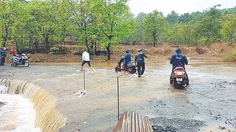 खेड-दापोली मार्गावरील फुरूस गावाजवळील पुलाचे काम अद्याप अपूर्ण असून, या ठिकाणी तयार करण्यात आलेला पर्यायी मार्ग पावसाच्या पाण्याने वाहून गेला आहे. परिणामी, या मार्गावरील सर्व वाहतूक बंद करण्यात आली आहे. वाहनांची वाहतूक सध्या मंडणगडमार्गे वळवण्यात येत आहे.