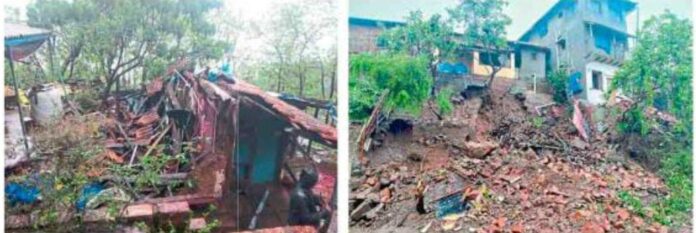 बाणकोट येथील ललिता पिंपळकर यांचे मातीचे घर पूर्णतः पावसामुळे कोसळले असून, घराचे सुमारे १ लाख ४३ हजारांचे नुकसान झाले आहे. सुदैवाने, या घरात कोणीही सध्या राहत नसल्याने कोणतीही जीवितहानी झाली नाही. सुदैवाने येथील विष्णू मोहिते यांच्या घराचा काही भाग कोसळल्यामुळे घराला तडा गेला असून, त्यांचे ५७ हजारांचे नुकसान झाले आहे. सुरक्षेच्यादृष्टीने त्यांना अन्य ठिकाणी स्थलांतरित करण्यात आले आहे. वाल्मीकीनगर येथे नासीर बेग यांच्या घरावर मोठा दगड कोसळून पडल्याने घराच्या भिंतीला तडे गेले त्यामुळे त्याने ५४ हजार ५०० रुपयांचे नुकसान झाल आहे वेसवी येथील रस्त्यालगत असलेल्या धबधब्याचा प्रवाह वाढल्याने त्याचे पाणी रस्त्यावर आले होते. काही काळ वाहतुकीस अडथळा निर्माण झाला. रविवारपासून सुरू झालेल्या पावसाचा जोर एवढा होता की, पहिल्याच पावसात तालुक्यातील प्रमुख असलेल्या भारजा नदीला पूरसदृश स्थिती निर्माण झाली. निवळी नदीही दुथडी भरून वाहू लागली. धबधबेही प्रवाहित झाले आहेत.