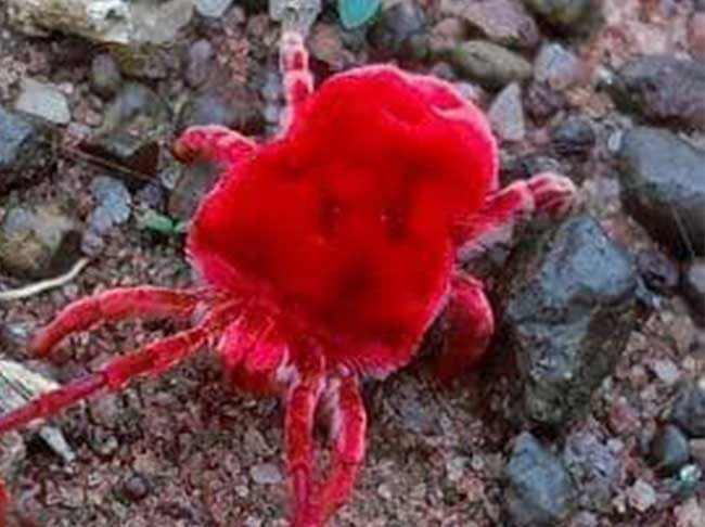 साखरपा : मृग नक्षत्राच्या आगमनाची वर्दी देणारे मृग कीटकांचे दर्शन यंदा मृग नक्षत्र सुरू होण्याआधीच झाले आहे. गेले काही दिवस सतत पडणाऱ्या पावसामुळे या कीटकांचे आगमन शेतातून झाले आहे.