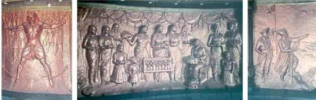 रत्नागिरी : शहरातील जिजामाता उद्यानामध्ये छत्रपती संभाजी महाराजांचा सर्वांत उंच पुतळा उभारण्यात आला आहे. उद्योगमंत्री आणि पालकमंत्री उदय सामंत यांची ही संकल्पना आहे. त्यांच्या आणखी एका नव्या संकल्पनेतून छत्रपती संभाजी महाराजांचा जीवनप्रवास १९ भित्तीशिल्पातून उलगडण्यात आला आहे. विशेष म्हणजे जे. जे. स्कूल ऑफ आर्टमध्ये शिक्षण घेतलेल्या रत्नागिरीतील शिल्पकाराने ही देखणी आणि आकर्षक शिल्पं तयार केली आहेत. पर्यटकांसाठी ही पर्वणी ठरणार आहे.