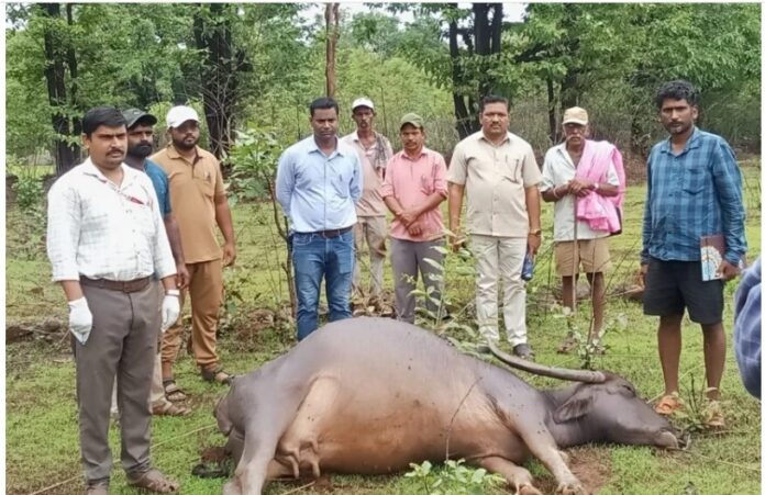 कडवई ग्रामदेवता मंदिर येथे धरणाजवळ सायंकाळी कोंडू जागली हे जनावरे घेऊन जात असताना विजेची तार तुटून त्यांच्या म्हशीच्या अंगावर पडली. त्यामध्ये तिचा मृत्यू झाला. या घटनेची माहिती मिळताच तुरळ शाखेचे कनिष्ठ अभियंता वीरेंद्र सकपाळ, कर्मचारी सचिन कुंभार, अक्षय कांबळे, युवराज गायकवाड यांनी घटनास्थळी येत वीजप्रवाह बंद करून घटनेची पाहणी केली. गुरुवारी सकाळी पशुवैद्यकीय अधिकारी चारुदत्त बेलुरे यांनी शवविच्छेदन केले. तर ग्राम महसूल अधिकारी विठ्ठल सराई, उपसरपंच दत्ताराम ओकटे, पोलिस पाटील संजय ओकटे व अभियंता वीरेंद्र सकपाळ यांच्या उपस्थितीत घटनास्थळी पंचनामा करण्यात आला.