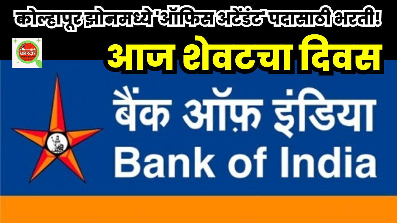 कोल्हापूर: बँक ऑफ इंडिया (BOI), कोल्हापूर झोनने ‘ऑफिस अटेंडंट’ या पदासाठी भरतीची अधिसूचना जारी केली आहे. या भरती मोहिमेअंतर्गत एकूण 01 रिक्त जागा भरण्यात येणार आहे. इच्छुक आणि पात्र उमेदवारांना ऑफलाईन पद्धतीने अर्ज करण्याचे आवाहन करण्यात आले आहे. अर्ज करण्याची अंतिम तारीख ०३ जून २०२५ आहे.