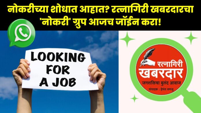 रत्नागिरी जिल्ह्यातील आणि कोकणातील नोकरी शोधणाऱ्या तरुणांसाठी एक आनंदाची बातमी आहे. कोकणातील सर्वात मोठे वृत्तपत्र नेटवर्क म्हणून ओळखल्या जाणाऱ्या रत्नागिरी खबरदारने बेरोजगारांना नोकरी मिळवण्यासाठी मदत करण्याच्या उद्देशाने एक विशेष ‘नोकरी’ ग्रुप सुरू केला आहे. या ग्रुपमध्ये तुम्हाला शासकीय आणि खासगी क्षेत्रातील नोकरीच्या संधींचे नियमित अपडेट्स मिळणार आहेत. या ग्रुपमध्ये सामील होण्यासाठी कोणतेही शुल्क आकारले जाणार नाही, म्हणजेच ही सेवा पूर्णपणे विनामूल्य आहे. रत्नागिरी खबरदारचा हा उपक्रम कोकणातील हजारो तरुणांना नोकरी शोधण्यात नक्कीच उपयुक्त ठरेल. जर तुम्हाला नोकरीच्या संधींबद्दल माहिती हवी असेल आणि तुम्हाला हमखास नोकरी मिळवायची असेल, तर खालील लिंकवर क्लिक करून रत्नागिरी खबरदारचा ‘खबरदार नोकरी’ ग्रुप जॉईन करा आणि नोकरीविषयक सर्व अपडेट्स मिळवा आपल्या मोबाईलवर.