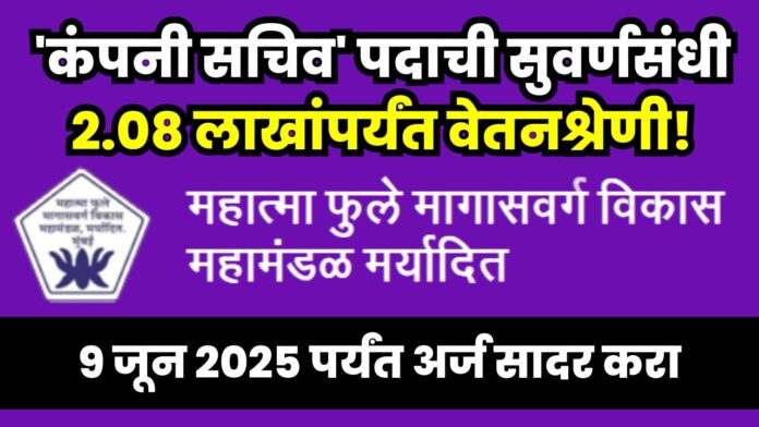 महात्मा फुले मागासवर्ग विकास महामंडळात कंपनी सचिव म्हणून काम करण्याची ही एक उत्तम संधी आहे. पात्र उमेदवारांनी लवकरात लवकर अर्ज करून या संधीचा लाभ घ्यावा.