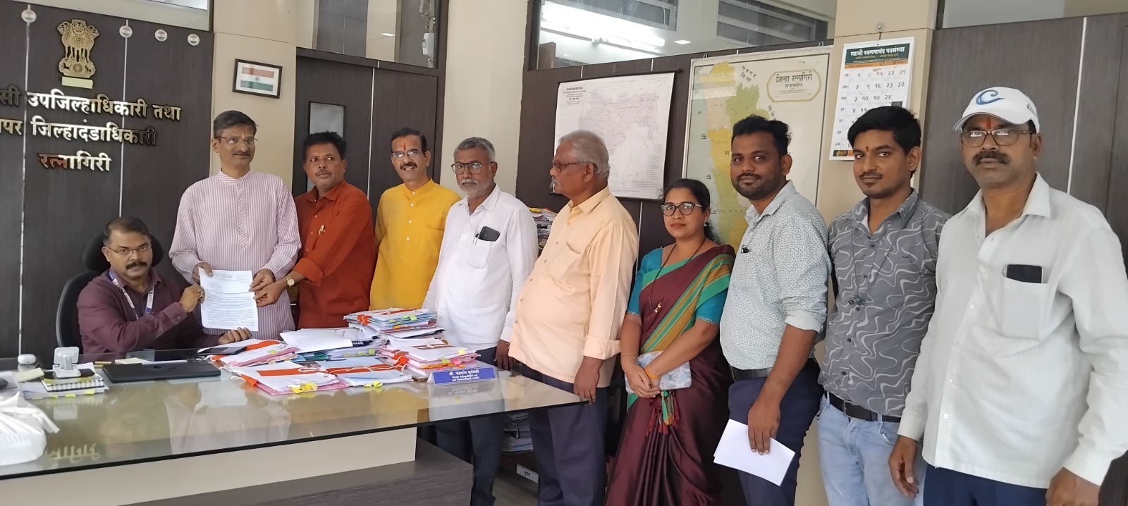 रत्नागिरी : भारताचे प्रेरणास्थान छत्रपती शिवाजी महाराज यांचा इतिहास केंद्रीय माध्यमिक शिक्षण मंडळाच्या (CBSE) अभ्यासक्रमात केवळ ६८ शब्दांत आणि ११ ओळींत शिकवणे हे महाराजांच्या शौर्याचा अपमान आहे, असा तीव्र आक्षेप घेत हिंदु जनजागृती समितीने आज निवासी उपजिल्हाधिकारी श्री. अजय सूर्यवंशी यांना निवेदन दिले. सीबीएसई अभ्यासक्रमात छत्रपती शिवाजी महाराजांचा स्वतंत्र, सविस्तर आणि सन्मानपूर्वक समावेश तात्काळ करण्याची मागणी करण्यात आली. यावेळी शैलेश बेर्डे, ज्ञानेश्वर राऊत, निलेश आखाडे, सौ. सायली बेर्डे, मुकेश माळी, नितीन गांगण, गणपत निवळकर, गोविंद भारद्वाज, संजय जोशी यांच्यासह हिंदु जनजागृती समितीचे पदाधिकारी उपस्थित होते.