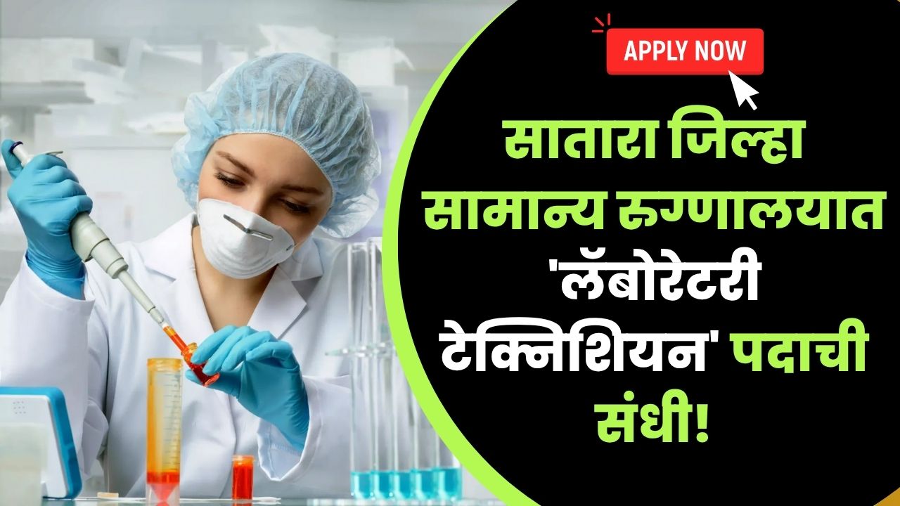 job search सातारा जिल्हा सामान्य रुग्णालयाने आयसीटीसी लॅबोरेटरी टेक्निशियन (ICTC Laboratory Technician) पदासाठी भरती प्रक्रिया जाहीर केली आहे. या भरतीद्वारे एकूण एक (१) रिक्त जागा भरण्यात येणार असून, इच्छुक आणि पात्र उमेदवारांना ऑफलाईन पद्धतीने अर्ज करण्याची संधी आहे.