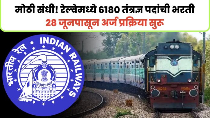 मोठी संधी! रेल्वेमध्ये 6180 तंत्रज्ञ पदांची भरती; 28 जूनपासून अर्ज प्रक्रिया सुरू