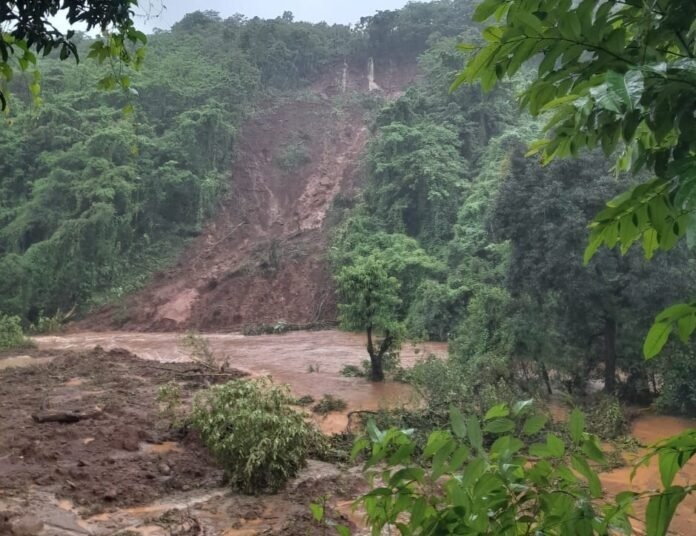 संगमेश्वर : मुसळधार पावसामुळे गोळवली परिसरात भूस्खलन झाल्याची घटना सोमवारी पहाटे घडली. जानू गंगाराम करंडे, महादेव भागोजी करंडे आणि गणू करंडे यांच्या मालकीच्या डोंगराचा मोठा भाग खचल्याने गावात भीतीचे वातावरण निर्माण झाले आहे. या भूस्खलनामुळे ताम्हण कोंड पऱ्याला नदीसारखा प्रवाह निर्माण होऊन धरणाच्या स्वरूपाचे दृश्य निर्माण झाले. परिणामी, गोळवली वाड्यांकडे जाणारा मुख्य कॉजवे पूर्णपणे बंद झाला आहे.