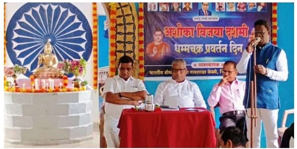 रत्नागिरी : तालुक्यातील भारतीय बौद्ध महासभा गाव शाखा केळये भिमोद्यान येथे जिल्हा संस्कार विभाग, रत्नागिरी तालुका शाखा आणि भिमोद्यान संघटना यांच्या संयुक्त विद्यमाने दिनांक १२ ऑक्टोबर २०२४ रोजी अशोका विजया दशमी, धम्मचक्र परिवर्तन दिन आणि वर्षावास कार्यक्रम संपन्न झाला. कार्यक्रमाची सुरुवात त्रिसरण पंचशील ध्वजारोहण करून आणि बोधिवृक्षाला वंदन करून करण्यात आली. त्यानंतर विहारातील विधिवत कार्यक्रम शाखेचे विद्यमान अध्यक्ष आयु, अनिल चवेकर यांच्या अध्यक्षतेखाली आणि जिल्हा संस्कार विभागाचे प्रमुख आयु. संजय कांबळे यांच्या उपस्थितीत पार पडला.