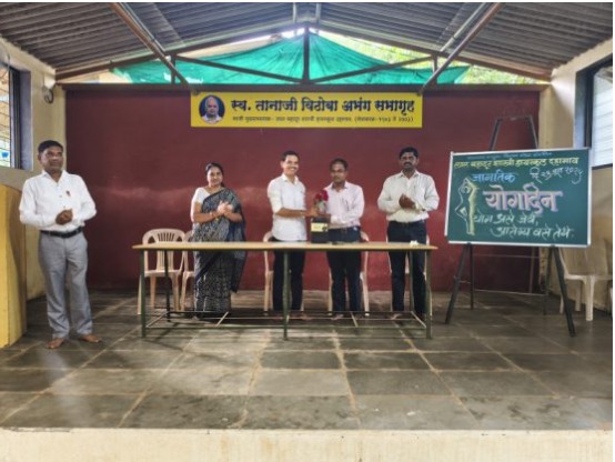या कार्यक्रमानिमित्ताने क्रीडा शिक्षक श्री. मनोज चव्हाण यांनी योग व योगाच्या आवश्यकता, योगाचे फायदे व महत्त्व विद्यार्थ्यांना सांगितले.