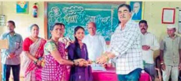 सावर्डे : कुंभारखाणी बुद्रुक (ता. संगमेश्वर) येथील ग्रामोत्कर्ष संघाने माध्यमिक विद्यामंदिरमध्ये दहावी परीक्षेत प्रथम क्रमांकाने उत्तीर्ण होणाऱ्या विद्यार्थ्याला २१ हजारांचे बक्षीस ठेवले आहे. यंदा हे बक्षीस मुरडव येथील शमिका मेणे हिने ९०.८० टक्के गुण मिळवून पटकावले. शालेय समितीचे अध्यक्ष राजेंद्र कदम यांच्या हस्ते तिला हे बक्षीस देण्यात आले. (कै.) शंकरराव सुर्वे (दादासाहेब) यांच्या स्मरणार्थ देण्यात येणाऱ्या बक्षिसाचे हे नववे वर्ष आहे. विद्यालयाच्या गुणवंत विद्यार्थी सत्कार सोहळ्यात छोटा शिशु ते दहावी अखेर गुणानुक्रमे प्रथम तीन येणाऱ्या विद्यार्थ्यांना संस्थेच्या वतीने रोख पारितोषिक देऊन गौरवण्यात आले. या वेळी संस्था कार्यकारिणी सदस्य सचिन सुर्वे, सरपंच वंदना सुर्वे, उपसरपंच अनिल सुर्वे, सामाजिक कार्यकर्ते विकास सुर्वे, पालक-शिक्षक संघाचे उपाध्यक्ष मंगेश गुरव, शलाकाताई सुर्वे, केशव शितप, मुख्याध्यापक विलास जाधव उपस्थित होते.