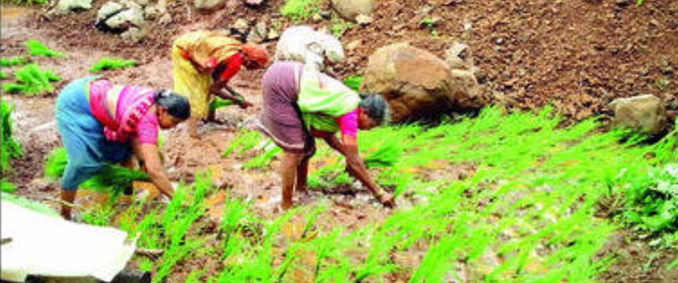 माखजन : संगमेश्वर तालुक्यात माखजन परिसरात भात लावणीला प्रारंभ झालेला पाहायला मिळत आहे. मे महिन्यातच पावसाने सुरुवात केल्याने पेरण्या रखडल्या होत्या. यामुळे साहजिकच भात लावणीला विलंब झाला आहे.