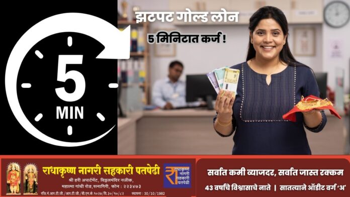 रत्नागिरी, ता. २६ जून : आर्थिक गरज भागवण्यासाठी आता तुम्हाला जास्त वाट पाहावी लागणार नाही! रत्नागिरीतील नागरिकांच्या सोयीसाठी राधाकृष्ण नागरी सहकारी पतपेढीने ‘झटपट गोल्ड लोन’ योजना आणली आहे. या योजनेअंतर्गत, ग्राहकांना अवघ्या ५ मिनिटांत सोन्याच्या दागिन्यांवर कर्ज उपलब्ध होणार आहे.