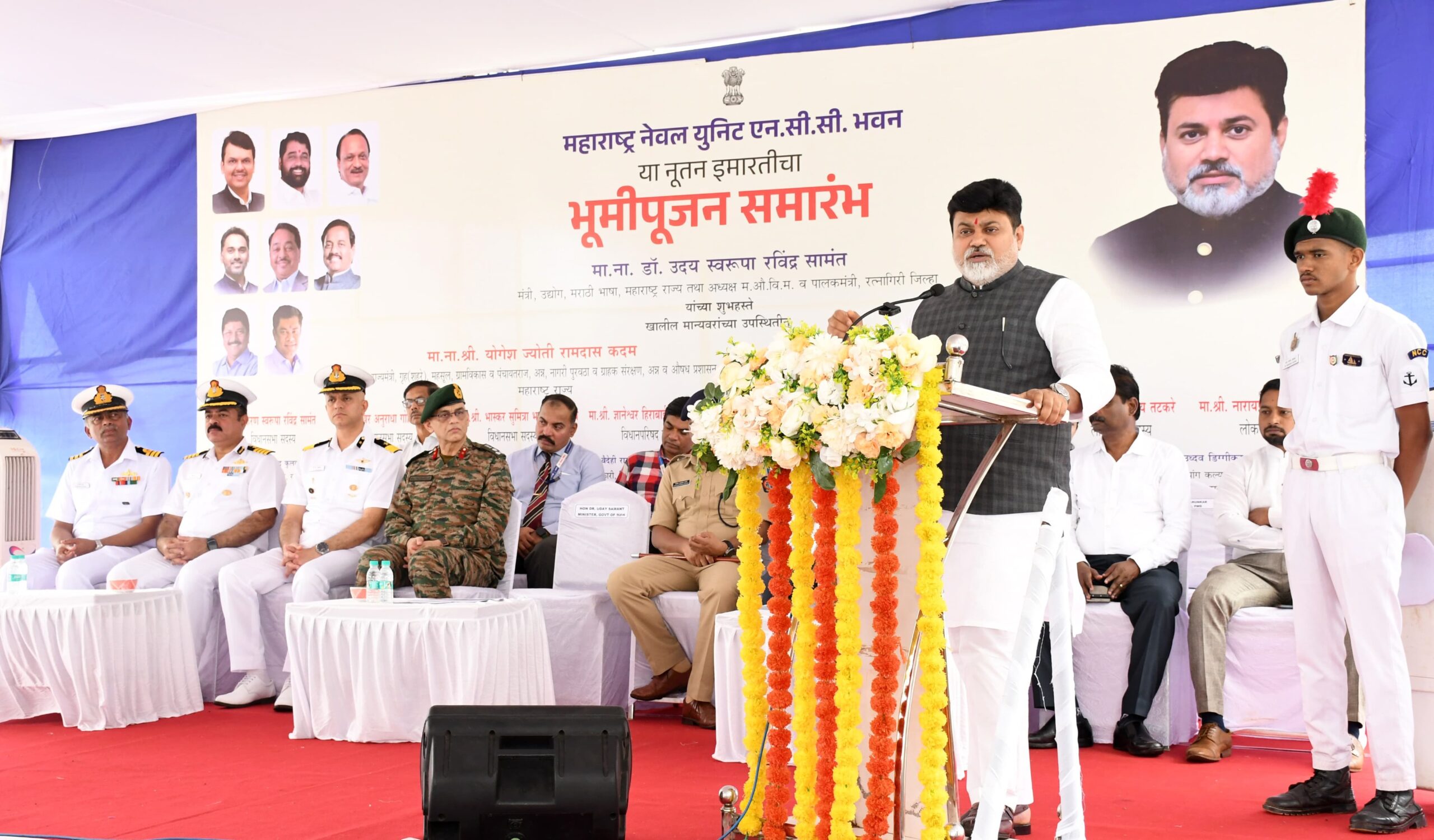 2 महाराष्ट्र नेव्हल युनिट एनसीसी भवनाचे भूमिपूजन पालकमंत्री डॉ. सामंत यांच्या हस्ते आज झाले. या कार्यक्रमाला ग्रुप कमांडर ब्रिगेडियर आर. के. पैठणकर, डीआयजी डी. एन. उपाध्याय, कमांडर के. राजेशकुमार, शैलेश गुप्ता, पोलीस अधिक्षक नितीन बगाटे, अधिक्षक अभियंता मिलींद कुलकर्णी, प्रशांत चतुर, सतीश शेवडे आदी उपस्थित होते.