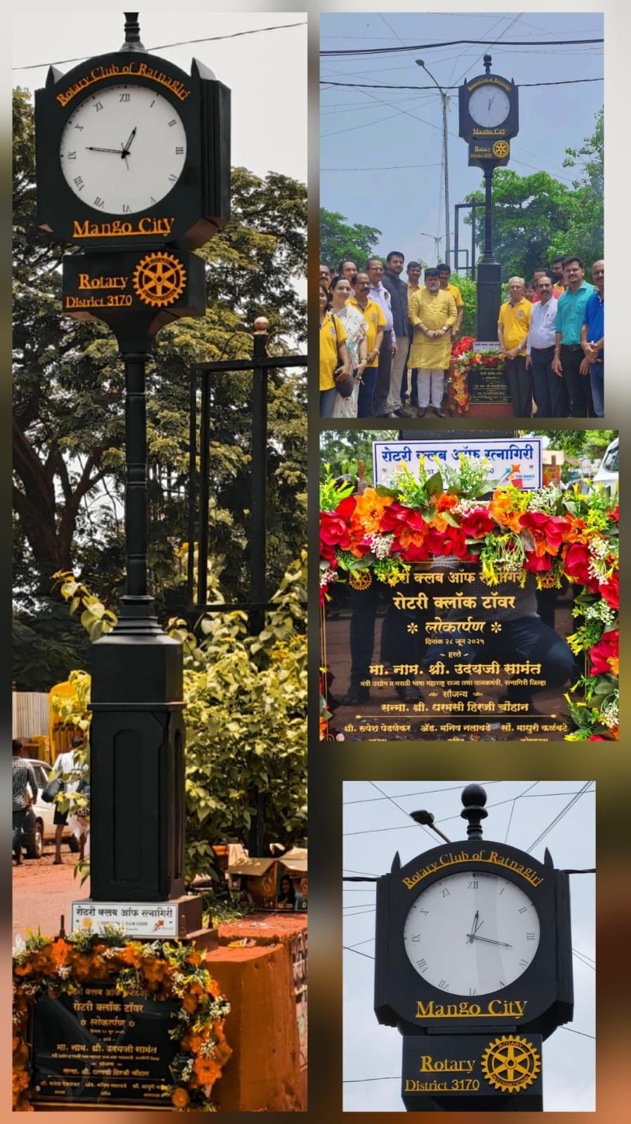 क्लॉक टॉवरचा लोकार्पण सोहळा प्रसंगी सोहळा ना. उदय सामंत, महाराष्ट्र राज्य उद्योग मंत्री, मराठी भाषा मंत्री तथा पालक मंत्री, माजी नगराध्यक्ष बंड्या साळवी, विलास चाळके, रोटरी क्लबचे अध्यक्ष श्री.रुपेश पेडणेकर, सचिव अॅड.मनिष नलावडे, कोषाध्यक्ष माधुरी कळंबटे, सीनियर रोटेरिअन धरमसीभाई चौहान, केशवराव इंदुलकर, विनायक हातखंबकर, अशोक घाटे, निलेश मुळ्ये, प्रमोद कुलकर्णी, श्रीकांत भुर्के, रोहित वीरकर आणि असंख्य रोटरी सदस्य उपस्थित होते.