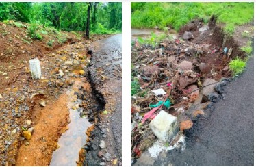 तुरळ ते आरवली रस्त्याविषयी भायजे यांनी पत्रकारांना माहिती दिली. ते म्हणाले, पहिल्या पावसात रस्त्याची दुरवस्था झाली असून, डांबरीकरणावरून गाडी जरा बाहेर गेली तर उलटण्याची भीती आहे. घडशीवाडी स्मशानभूमी येथे ग्रामस्थांनी श्रमदानातून एसटी बस वळवण्यासाठी ४० मीटर लांबी-रुंदीचे दुहेरी सोलिंग व खडीकरण करून रस्ता केला होता. त्याच ठिकाणी गेल्यावर्षी गरज नसताना मोरी टाकली गेली. त्या मोरीतून पाणी नाल्यातच जाण्याऐवजी नाल्याचेच पाणी मोरीतून गटारात येत आहे. तेच पाणी वाडीतील लोकांच्या घरादारात शिरत आहे. त्यामुळे ती मोरी काढून टाका, अशी मागणी ग्रामपंचायतीतर्फे करण्यात आली होती; मात्र अद्याप संबंधित ठेकेदाराने ती मोरी काढलेली नाही. कामाच्या अंदाजपत्रकात सरंद जाधववाडी येथे व आंबवपोंक्षे जुनी मराठी शाळा येथे दोन कॉबवेसाठी निधी मंजूर केला आहे. त्या कॉजवेऐवजी तिथे स्लॅब ड्रेन घ्या, अशी मागणी ग्रामस्थांनी केली होती, त्याकडे प्रशासनाने दुर्लक्ष केले. त्या ठिकाणी पावसात पाणी आले असून, कॉजवेवरून ये-जा करणे ग्रामस्थांना गैरसोयीचे होत आहे. पावसात नाल्यातील कचरा अडकल्याने पाणी शेतकऱ्यांच्या शेतात शिरले. त्यात शेतीचे नुकसान झालेले आहे. या सर्व समस्या वेळीच सोडवणे गरजेचे आहे.