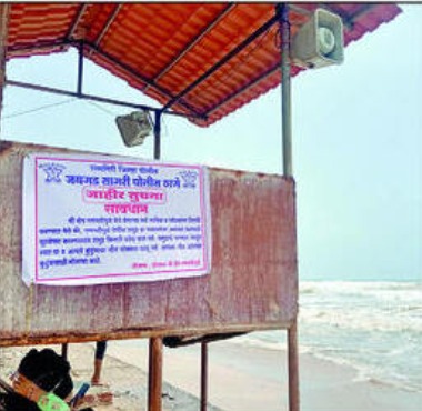गणपतीपुळे : रत्नागिरी तालुक्यातील श्री क्षेत्र गणपतीपुळे येथील समुद्र हा मोठ्या प्रमाणात खवळलेला असल्याने, सुरक्षेच्या कारणास्तव जयगड सागरी पोलीस ठाण्याकडून गणपतीपुळे समुद्रकिनाऱ्यावर शनिवारी दोन ठिकाणी जाहीर सूचना फलक लावण्यात आले आहेत.