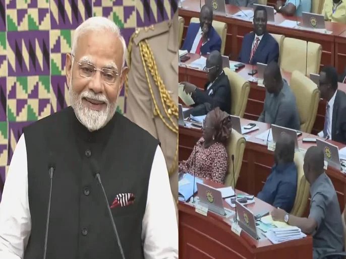 यावेळी पंतप्रधान मोदींनी भारताच्या लोकशाहीचे कौतुक करताना सांगितले की, भारतात २५०० राजकीय पक्ष आहेत, त्यापैकी १७ ते १८ पक्ष कुठल्या ना कुठल्या राज्यात सत्तेवर आहेत. हा आकडा ऐकून घानाच्या संसदेत उपस्थित असलेले सर्व नेते आश्चर्यचकित झाले अन् ते एकमेकांकडे पाहू लागले. यादरम्यान, पंतप्रधान मोदी म्हणाले की, भारत लोकशाहीची जननी आहे. आमच्यासाठी लोकशाही ही केवळ एक व्यवस्था नाही, ती मूलभूत मूल्यांचा एक भाग आहे. भारतात २२ अधिकृत भाषा आहेत, हजारो बोलीभाषा आहेत. यामुळेच भारतात येणाऱ्या लोकांचे नेहमीच खुल्या मनाने स्वागत केले जाते.
