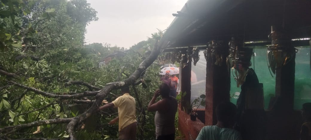 घटनेची माहिती मिळताच ग्रामस्थांनी तात्काळ धाव घेतली आणि तातडीने मदतकार्य सुरू केले. ग्रामस्थांच्या मदतीने झाड बाजूला काढण्यात आले आणि घरातील लोकांना सुरक्षितपणे बाहेर काढण्यात यश आले.