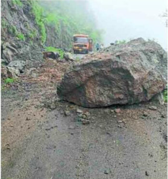 समुद्रसपाटीपासून ४ हजार फुटपेक्षा उंच असल्यामुळे या ठिकाणी पावसाचे प्रमाण अधिक आहे. येथील ग्रामस्थांचा शहराशी असलेला संपर्क तुटतो. मागील आठवडयात पडलेल्या मुसळधार पावसाने सलग दोनवेळा घाटात दरड कोसळली. त्यामुळे वाहतुकीत खंड पडलेला होता. दरड कोसळण्याच्या भितीबरोबरच आता नवीन संकट या मार्गावर आ वासून आहे. दरड कोसळलेल्या भागात ३ ठिकाणी दरीकडील बाजूचा रस्ता खचत आहे. रस्त्याच्या खाली बाजूपट्टीची माती वाहून गेली आहे. त्यामुळे रस्त्यालाही धोका निर्माण होऊ शकतो.