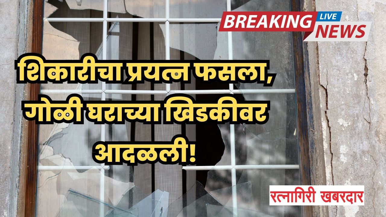 चिपळूण : चिपळूण तालुक्यातील गोवळकोट रोडवरील करजखांडा येथील एका भातशेतीत डुकराची शिकार करण्याच्या प्रयत्नात एक धक्कादायक घटना घडली आहे. शिकारीसाठी केलेल्या गोळीबारातील एक छर्रा जवळच असलेल्या इमारतीच्या खिडकीवर आदळला, ज्यामुळे खिडकीची काच फुटली. ही घटना २९ जून २०२५ रोजी सकाळी ११:३० वाजताच्या सुमारास घडली.