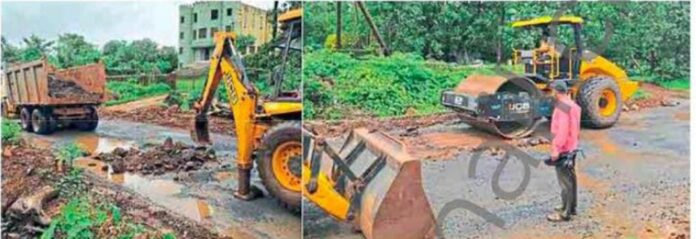 मंडणगड : आंबडवे-लोणंद राष्ट्रीय महामार्गावर जून महिन्यात पावसामुळे पडलेले खड्डे बुजवण्याच्या कामाला राष्ट्रीय महामार्ग प्राधिकरण व संबंधित ठेकेदाराने (ता. ७) सुरुवात केली आहे. रस्त्यावरील खड्ड्यात वृक्षारोपण करणार असल्याचे निवेदन राष्ट्रवादी काँग्रेसने दिल्यानंतर तत्काळ कार्यवाही करण्यात आली.