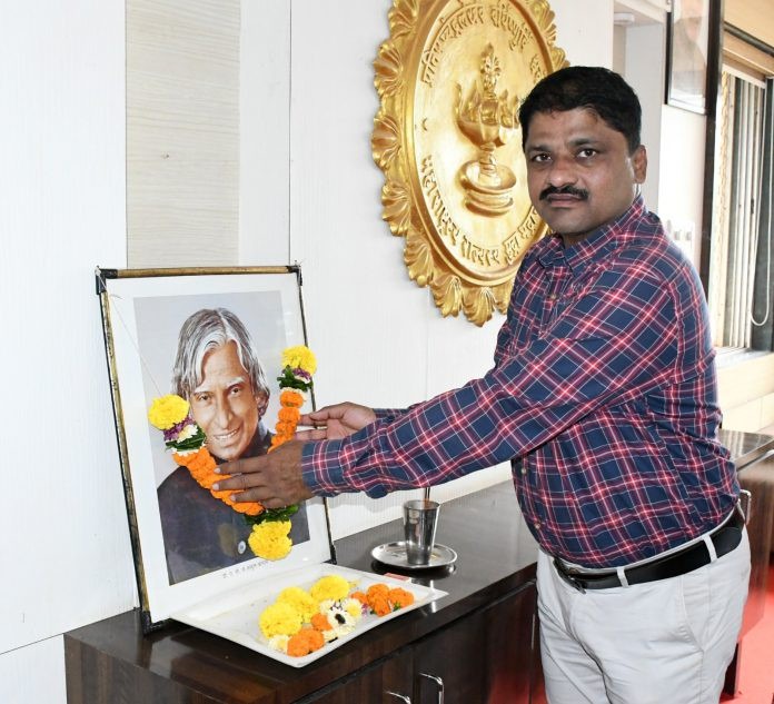 रत्नागिरी : भारतरत्न माजी राष्ट्रपती डॉ. ए. पी. जे. अब्दुल कलाम यांचा जन्मदिन हा ‘वाचन प्रेरणा दिन’ म्हणून साजरा करण्यात येतो. यानिमित्त अपर जिल्हाधिकारी शंकर बर्गे यांनी येथील जिल्हाधिकारी कार्यालयात डॉ. ए. पी. जे. अब्दुल कलाम यांच्या प्रतिमेस पुष्पहार अर्पण करून अभिवादन केले.