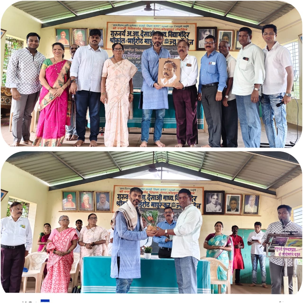 या कार्यक्रमाला डी. कॅड कॉलेज देवरुखचे प्राध्यापक श्री. परांजपे सर यांनी प्रमुख वक्ते म्हणून उपस्थिती लावली. परांजपे सरांनी लाईव्ह पोर्ट्रेट स्केच डेमो सादर करून उपस्थितांची मने जिंकली आणि आपल्या कलेचे प्रदर्शन केले. विद्यालयाचे प्राचार्य श्री. बाबासाहेब धोंगडे, मंडळाचे मार्गदर्शक प्राध्यापक श्री. चंद्रमोहन देसाई सर, माजी शिक्षण विस्तार अधिकारी श्रीमती अंजली शिंदे मॅडम, उपसरपंच श्री. सुनील डांगे आणि निवृत्त ज्येष्ठ शिक्षक यांसारखे अनेक मान्यवर पाहुणे या कार्यक्रमाला उपस्थित होते.