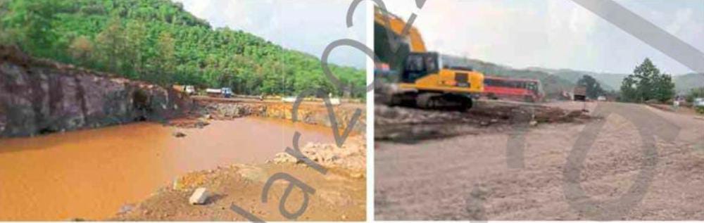 त्यामुळे गावातील नागरिकांना वाहनांच्या वर्दळीतूनच मार्ग काढत रस्ता ओलांडून जावे लागत आहे. मार्गावरील साखरपा येथील बाजारपेठेत जाणाऱ्या रस्त्याला बायपास रस्त्याची सुविधा नसल्याने अपघात होण्याची शक्यता आहे येथील देवळेफाटा ते आंबाघाटाच्या पायथ्यापर्यंत महामार्गाच्या अर्धवट कामांमुळे मोठ्या प्रमाणात चिखलाचे साम्राज्य पसरले आहे. तसेच खोदलेल्या रस्त्यांमध्येच मोठ्या प्रमाणावर पाणी साचल्याने रस्त्याचे काम थांबवण्यात आले आहे. रत्नागिरी जिल्ह्यात सतत पडत असलेल्या पावसामुळे रस्त्याच्या कामाचा वेग मंदावला आहे. साखरपा तसेच नाणीजसारख्या महत्त्वाच्या वर्दळीच्या ठिकाणी बायपास रस्त्याचे काम आधी पूर्ण करण्याची गरज असताना त्याकडे दुर्लक्ष करण्यात आले आहे. आंबाघाट ते पालीपर्यंतचा संपूर्ण रस्ता घाटमाथ्याचा असल्याने येथे दरडी कोसळण्याची भीती आहे. गतवर्षी देवळे परिसरात झालेल्या चिखलामुळे प्रवाशांनी भरलेली बस दरीत जाता जाता थोडक्यात वाचली होती.