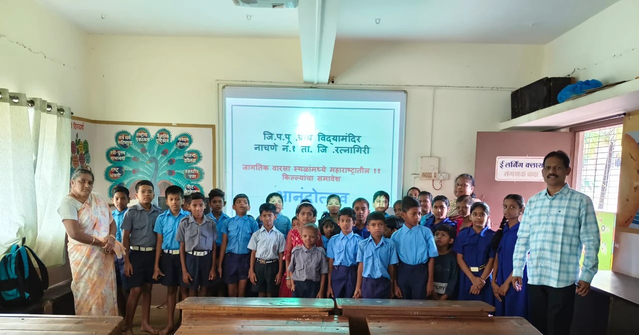 रत्नागिरी : जागतिक वारसा स्थळांमध्ये महाराष्ट्रातील अकरा किल्ल्यांचा समावेश झाल्याबद्दल नाचणे क्र. १ (ता. रत्नागिरी) जिल्हा परिषद शाळेतील मुलांनी आनंदोत्सव साजरा केला.