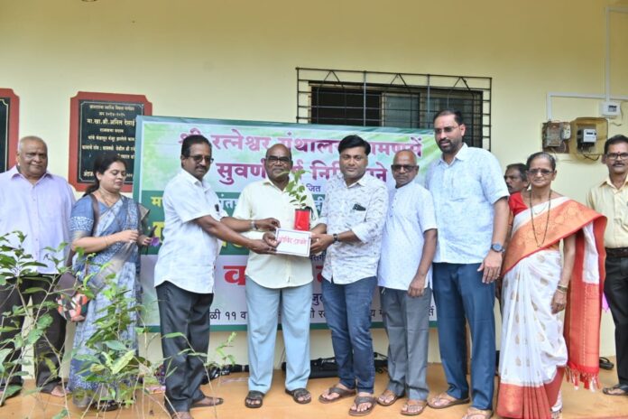 रत्नागिरी : रत्नागिरी तालुक्यातील धामणसे येथील श्री रत्नेश्वर ग्रंथालयाच्या आवारात लावलेल्या कदंब वृक्षाचा पहिला वाढदिवस आज बुधवारी मोठ्या उत्साहात साजरा करण्यात आला. पंतप्रधान नरेंद्र मोदी यांच्या ‘मन की बात’मधील ‘एक झाड आईच्या नावे’ या आवाहनाला प्रतिसाद देत, तसेच ग्रंथालयाचे अध्यक्ष उमेश कुळकर्णी यांच्या संकल्पनेतून, दिवंगत व्यक्तींच्या नावाने ६०० रोपांचे मोफत वाटप करून या कार्यक्रमाला वेगळेपण देण्यात आले.