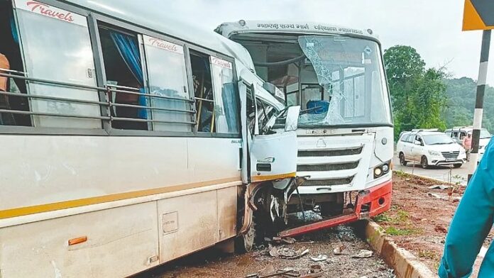 रत्नागिरी – चिपळूण एसटी बस (एमएच 20 बीएल 4038) आणि चिपळूणहून रत्नागिरीच्या दिशेने जाणारी मिनी बस (एमएच 08 एपी 4527) यामध्ये सायंकाळी सुमारे 5.30 च्या दरम्यान समोरासमोर अपघात झाला. या अपघातात जखमी झालेल्या सर्व प्रवाशांना संगमेश्वर ग्रामीण रुग्णालयात दाखल करण्यात आले आहे. मिनी बसचा चालक हा गाडीच्या केबिनमध्ये अडकला होता. दोन्ही बसना जेसीबीच्या सहाय्याने बाजूला करून प्रवासी बाहेर काढावे लागले. अडकलेल्या प्रवाशांना अर्ध्या तासाच्या प्रयत्नानंतर बाहेर काढण्यात यश आले. त्यांच्यावर प्राथमिक उपचार करून अधिक उपचारासाठी रत्नागिरी येथे पाठवण्यात आले आहे.
