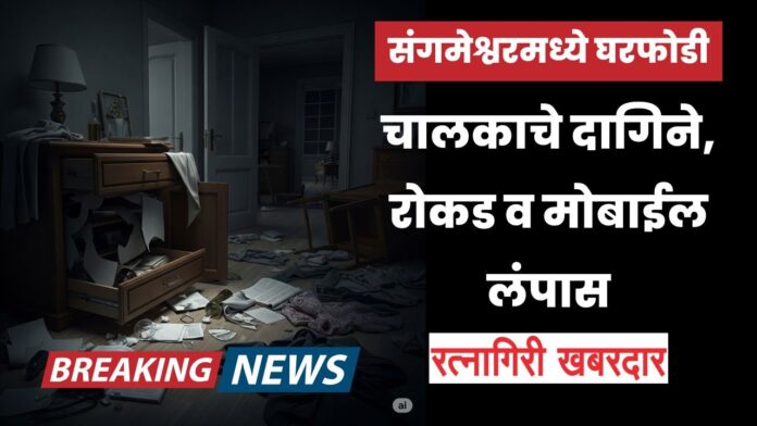 संगमेश्वर, [१९ जुलै, २०२५] : संगमेश्वर तालुक्यातील कोड असूर्डे येथील राधाकृष्ण मंदिराशेजारी राहणाऱ्या एका एस.टी. चालकाच्या घरात मध्यरात्री अज्ञात चोरट्याने घरफोडी करून सुमारे २७,५०० रुपयांचा ऐवज लंपास केल्याची घटना घडली आहे. यात रोकड, सोन्या-चांदीचे दागिने आणि मोबाईलचा समावेश आहे.