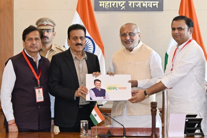 मुख्यमंत्री देवेंद्र फडणवीस यांच्या वाढदिवसानिमित्त जलसंपदा व आपत्ती व्यवस्थापन मंत्री गिरीश महाजन यांच्या संकल्पनेतून मुख्यमंत्री देवेंद्र फडणवीस यांच्या वाटचालीचा वेध घेणाऱ्या ‘महाराष्ट्र नायक’ या विशेष कॉफी टेबल बुकचे प्रकाशन राज्यपाल सी. पी. राधाकृष्णन यांचे हस्ते राजभवन येथे करण्यात आले. त्यावेळी ते बोलत होते. जलसंपदा मंत्री गिरीश महाजन यांची कॉफी टेबल बुकची निर्मितीची संकल्पना अभिनंदनीय असल्याचेही राज्यपाल राधाकृष्णन यांनी सांगितले. यावेळी विधानसभा अध्यक्ष ॲड. राहुल नार्वेकर, कौशल्य विकास मंत्री मंगलप्रभात लोढा, आमदार कालिदास कोळंबकर, योगेश सागर, मंगेश चव्हाण, देवयानी फरांदे, अनुप अग्रवाल आदी मान्यवर उपस्थित होते.