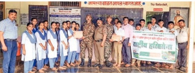 संगमेश्वर : तालुक्यातील कडवई येथील भाईशा घोसाळकर हायस्कूल व कनिष्ठ महाविद्यालयातील विद्यार्थ्यांनी राष्ट्रीय हरित सेनेंतर्गत सीमेवरील जवानांसाठी स्वतः राख्या बनवून भेट दिल्या. या राख्या सिंधुदुर्ग ५८ बटालियनचे हवालदार प्रदीप पाटील व हवालदार संतोष भाटकर यांच्याकडे टी. ओ. संतोष साळुंखे यांच्या उपस्थितीत देण्यात आल्या.