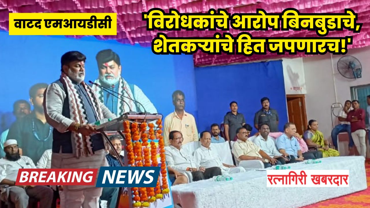 वाटद (रत्नागिरी) : रत्नागिरी जिल्ह्यातील वाटद येथे प्रस्तावित एमआयडीसीच्या विरोधात सुरू असलेल्या आंदोलनाला प्रत्युत्तर देण्यासाठी आज एमआयडीसी समर्थनार्थ एका भव्य मेळाव्याचे आयोजन करण्यात आले होते. या मेळाव्याला पंचक्रोशीतील हजारो ग्रामस्थांनी मोठ्या संख्येने उपस्थिती लावत, वाटद एमआयडीसीच्या समर्थनार्थ आपला कौल दिला. यावेळी राज्याचे उद्योगमंत्री उदय सामंत यांनी शेतकरी, जमीन मालक आणि व्यापारी यांच्या ‘वाटद एमआयडीसी जनप्रबोधन सभेत’ विरोधकांच्या आरोपांना सडेतोड उत्तर दिले.