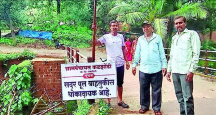 या रस्त्यावरून कायम रहदारी असलेल्याने फार मोठी मनुष्य हानी होऊ शकते, अशी संकटजन्य परिस्थिती निर्माण झाली आहे. दीड वर्षांपूर्वी कोणत्या ठेकेदाराने या ब्रिजचे काम केले त्या ठेकेदाराची व बांधकाम मंजुरी देण्यात आलेल्या अधिकाऱ्याची चौकशी करण्यात यावी, अशी आग्रही मागणी कळझोंडी ग्रामस्थांनी केली आहे.