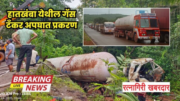 सोमवारी (२८ जुलै) रात्री अंदाजे ११ वाजण्याच्या सुमारास मुंबई-गोवा महामार्गावर, रत्नागिरी जिल्ह्यातील हातखंबा गावाजवळ एका गॅस टँकरचा भीषण अपघात झाला. हा टँकर पलटी झाल्यामुळे मोठ्या प्रमाणात गॅस गळती सुरू झाली. गॅसच्या तीव्र वासामुळे आणि संभाव्य स्फोटाच्या भीतीने परिसरातील रहिवाशांमध्ये तात्काळ घबराट पसरली. प्रशासनाने कोणतीही दुर्घटना टाळण्यासाठी तातडीने कार्यवाही करत हातखंबा गावाजवळील रहिवाशांना सुरक्षित स्थळी हलवले.