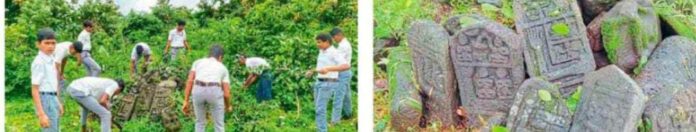 मंडणगड : श्रावण महिन्यातील पहिल्या सोमवारचे औचित्य साधून तुळशी न्यू इंग्लिश स्कूल या माध्यमिक प्रशालेतील विद्यार्थ्यांनी तुळशी गावचे ग्रामदैवत भैरवनाथ मंदिर परिसरात स्वच्छता अभियान राबवले. या परिसरातील विरगळ सतीशिळांचीही स्वच्छता केली.