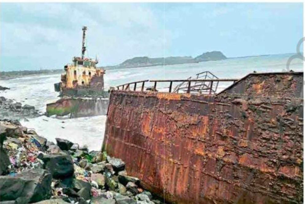 हे जहाज काही महिन्यापूर्वीच भंगारात काढले आहे. पावसाळ्याच्या दिवसातच जहाज तोडण्याचा प्रयत्न झाला. परंतु लाटांच्या माऱ्यामुळे काहीच भाग क्रेनच्या साह्याने जमिनीवर काढण्यात यश आले. दोन दिवस काम केल्यानंतर भंगार व्यावसायिकाने हे काम थांबवले आहे. सध्या जहाजाचे दोन्ही भाग दोरखंडाच्या सहाय्याने बांधून ठेवले आहे.