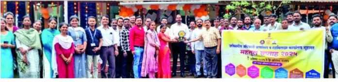 कर्मचाऱ्यांच्या पाल्यांचा सत्कार करताना इयत्ता दहावीमध्ये ९२.८०% गुण मिळवलेली मैत्रेही शिंदे, ८५ टक्के गुण मिळवलेली शौर्या पवार, ८४.२०% गुण मिळवलेली पूर्वा शिंदे, कोकण विभागीय महसूल क्रीडा व सांस्कृतिक स्पर्धा २०२४ २५ मध्ये उत्कृष्ट खेळाडू म्हणून यश मिळवलेले बॅडमिंटन आणि खोखो गोल्ड मेडल मंडळ अधिकारी प्रीती रेवाळे, टेबल टेनिस सिल्वर मेडल ग्राम महसूल अधिकारी प्राची घाणेकर, कबड्डीत पहिला क्रमांक, धावणेत तिसरा क्रमांक प्राप्त महसूल सेवक अभिषेक मयेकर, खोखो व सांस्कृतिकमध्ये महसूल सेवक पंकज आग्रे आणि खोखो गोल्ड आणि रनिंग रिले सिल्वर महसूल सेवक श्रुतिका आदवडे यांचा यावेळी सत्कार करण्यात आला.