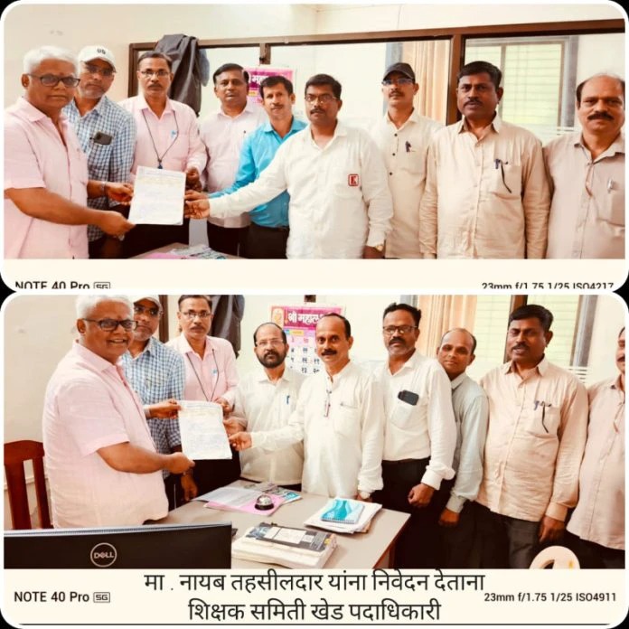 मात्र नुकत्याच काही शिक्षकांना मतदान केंद्रापासून दूरच्या शाळेमध्ये कामगिरी म्हणून आदेश देण्यात आले आहेत वरिष्ठांच्या आदेशानुसार असे शिक्षक त्यांच्या मतदान केंद्रापासून दूरवरच्या शाळेमध्ये काम करत आहेत. त्यामुळे ज्या मतदान केंद्रावर त्यांची बि.एल. ओ म्हणून नेमणूक झालेली आहे अशा मतदान केंद्रावर जाऊन काम करणे सदर शिक्षकांना त्रासदायक ठरत आहे. या संदर्भात महाराष्ट्र राज्य प्राथमिक शिक्षक समिती शाखा खेड च्या पदाधिकाऱ्यांनी तालुकाध्यक्ष संतोष चव्हाण यांच्या नेतृत्वाखाली खेड नायब तहसीलदार सिनकर साहेब यांची भेट घेऊन निवेदन दिले.