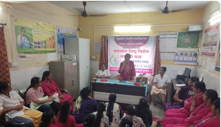 रत्नागिरी : बाळाचे आरोग्य सुधारण्यासाठी तसेच महिलांना कुठेही आणि कधीही स्तनपान देण्याच्या अधिकारांना प्रोत्साहन देण्यासाठी दरवर्षी १ ते ७ ऑगस्ट दरम्यान “जागतिक स्तनपान जनजागृती सप्ताह” साजरा करण्यात येतो. जिल्हा आरोग्य अधिकारी डॉ. अनिरुद्ध आठल्ये यांच्या मार्गदर्शनाखाली रत्नागिरी जिल्ह्यातील सर्व आरोग्य संस्थांमध्ये या सप्ताहाचे आयोजन करण्यात आले आहे. या वर्षाची थीम : “स्तनपानाला प्राधान्य द्या : शाश्वत सहाय्यक व्यवस्था तयार करा” अशी आहे. याअनुषंगाने नागरी प्राथमिक आरोग्य केंद्र झाडगाव येथे जागतिक स्तनपान सप्ताहचे आयोजन करण्यात आले होते.