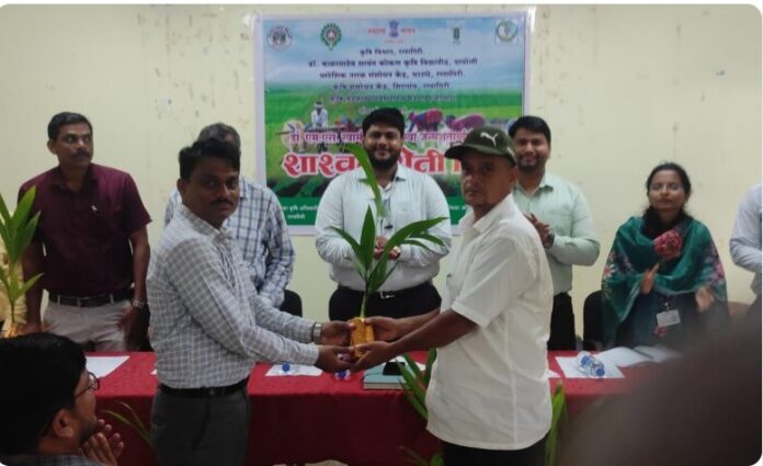 रत्नागिरी : भारतीय हरितक्रांतीचे जनक आणि सुरक्षेचे आधारस्तंभ भारतरत्न डॉ. एम. एस. स्वामीनाथन यांच्या जन्मशताब्दी दिनानिमित्त ७ ऑगस्ट रोजी शाश्वत शेती दिन कार्यक्रमाचे आयोजन प्रादेशिक नारळ संशोधन केंद्र भाट्ये, रत्नागिरी येथे करण्यात आले होते. कार्यक्रमासाठी जिल्हा अधीक्षक कृषी अधिकारी शिवकुमार सदाफुले, आत्माचे (रत्नागिरी) प्रकल्प संचालक विजय बेतीवार, प्रादेशिक नारळ संशोधन केंद्राचे प्रमुख डॉ. किरण माळशे, कृषी संशोधन केंद्र शिरगावचे प्रभारी अधिकारी डॉ. एन. जी. सोनोने, प्रादेशिक नारळ संशोधन केंद्राचे कीटक शास्त्रज्ञ डॉ. संतोष वानखेडे, रत्नागिरी तालुक्यातील चिंचखरी येथील शेतीनिष्ठ पुरस्कार प्राप्त शेतकरी हेमंत फाटक, आत्माचा प्रकल्प उपसंचालक श्रीमती सायली फासके, जिल्हा अधीक्षक कृषी अधिकारी कार्यालयातील कृषी उपसंचालक प्रतीक पाटील, रत्नागिरी तालुक्याचे तालुका कृषी अधिकारी विनोद हेगडे उपस्थित होते.