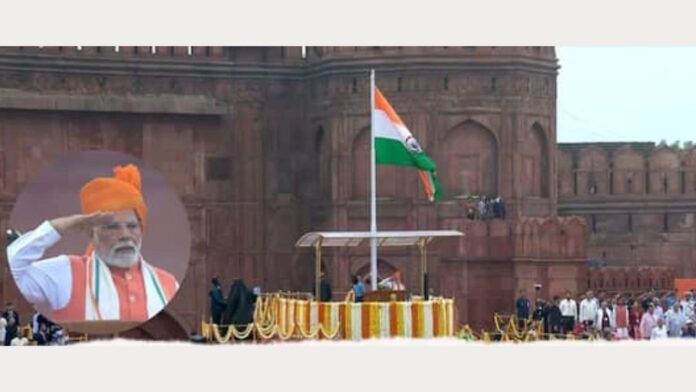 आज पंतप्रधान नरेंद्र मोदी यांनी लाल किल्ल्याच्या तटबंदीवरून सलग 12 व्या वेळी तिरंगा फडकवला.